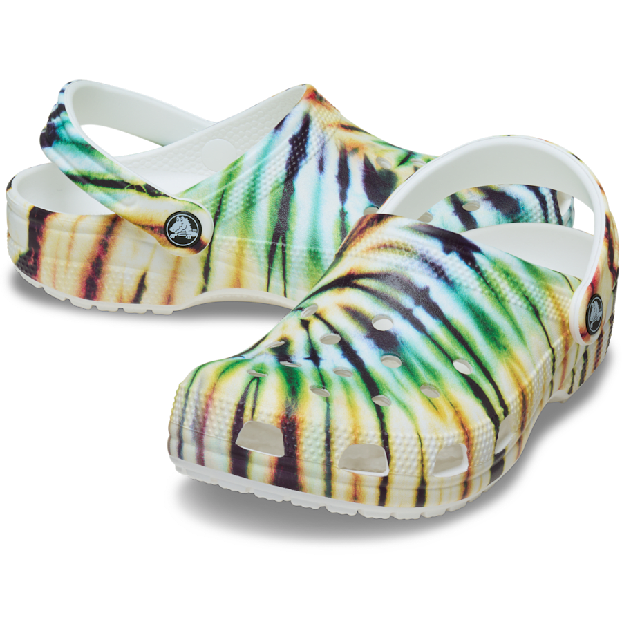 Timeless, fun and full of peaceful good vibes, the colorful tie-dye graphics on these clogs are the perfect way to make a groovy style statement. On the go or just hangin’ out. Croslite™ foam construction will keep you comfortably supported as the tie-dye graphics boost your style. Grounded in comfort, spiked with personality.
