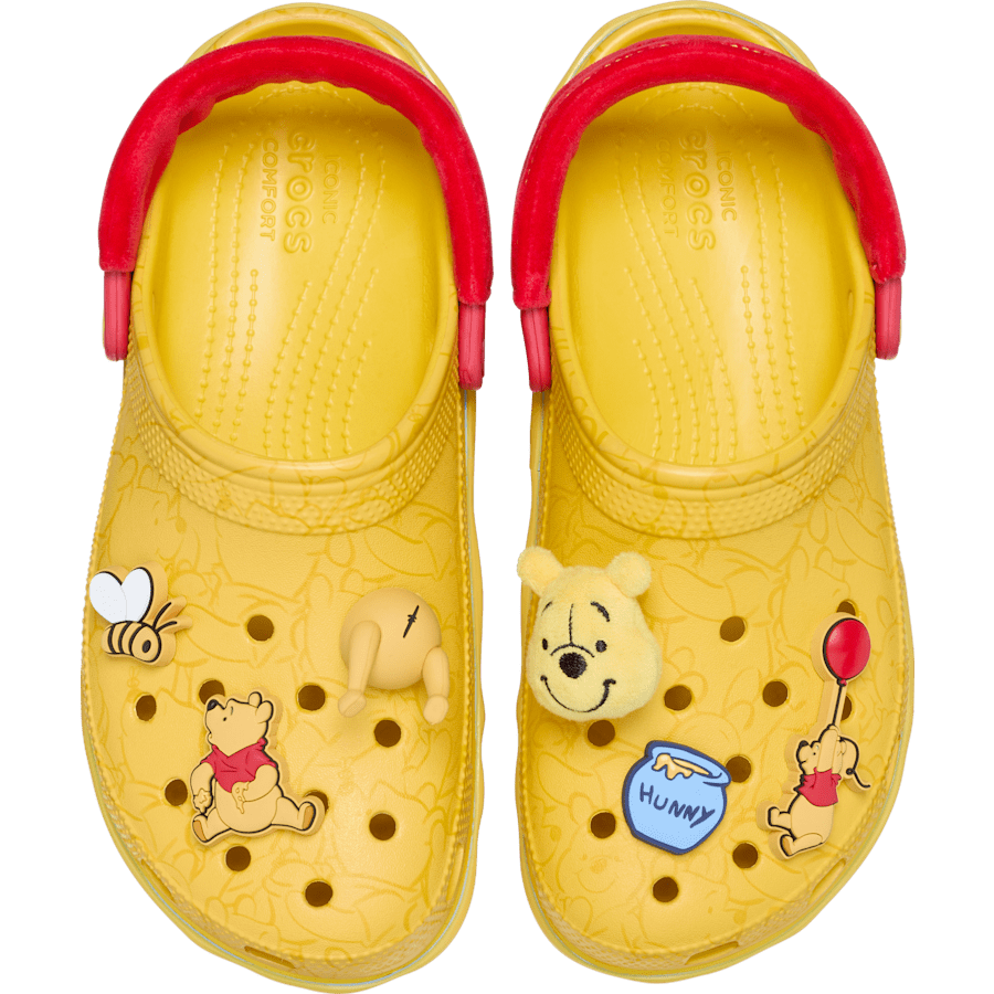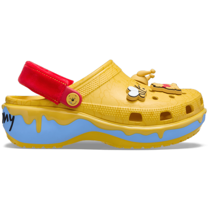 They’re sweet as honey. The Disney Winnie the Pooh Classic Platform Clog features an allover Pooh-bear print on a honey-colored background that drips down the platform sole. And exclusive Jibbitz™ Charms add even more cute character.