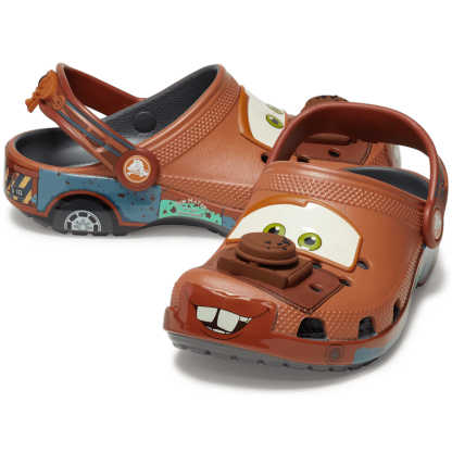 Who窶冱 up for some tractor tippin窶・ Mater just pulled up to join his best friend, Lightning McQueen, in our collection of Disney and Pixar Cars Classic Clogs. Each pair features Cars窶・illustrative graphics unique to Tow Mater. Delight in soft TPU details like an exposed engine on the toe and a tow hook on the heel strap. Ultra-comfy cushioned footbeds will have your feet happier 'n a tornado in a trailer park!
