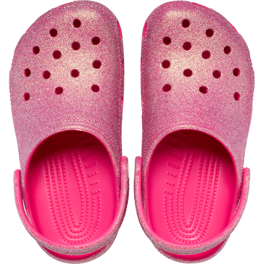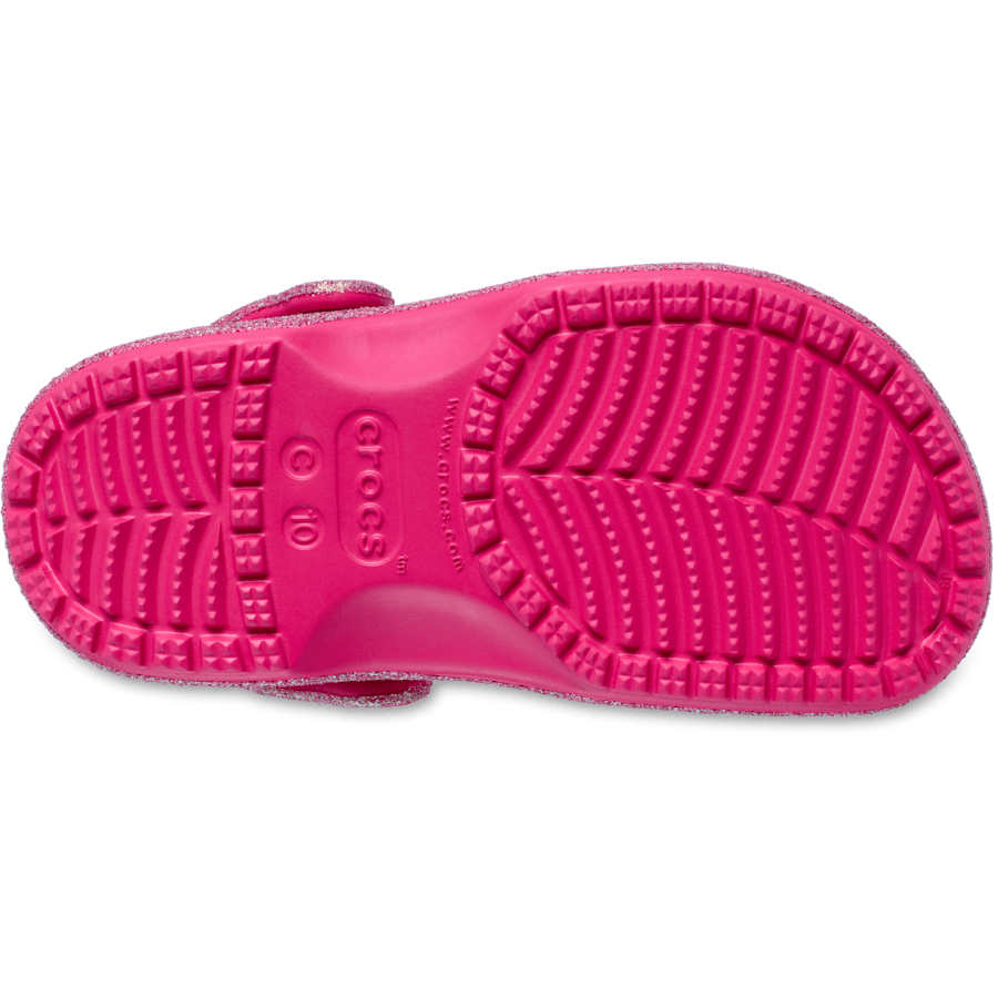 A fun new iridescent glitter treatment provides added style to this version of the iconic clog.The sparkly glitter changes color when you look at it from different angles, making these extra fun, and Croslite™ foam construction keeps them light and easy to wear. Also available for adults and toddlers, so you can get matching pairs for a fun full family moment. Grounded in comfort, spiked with personality. Sparkle on!