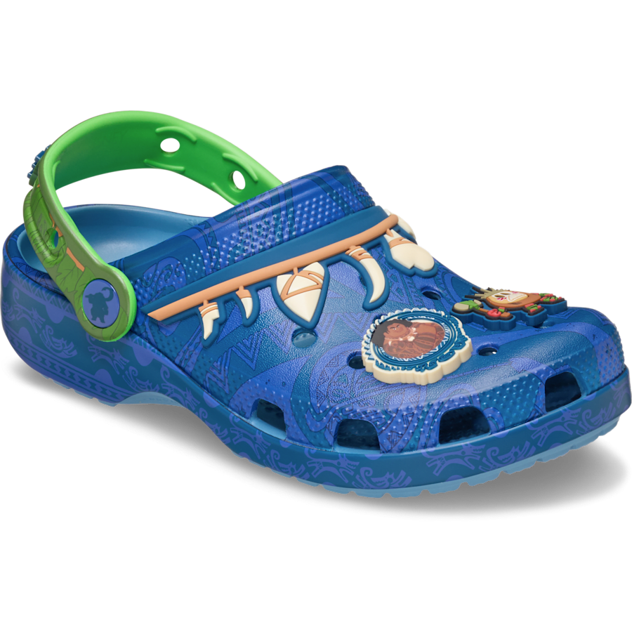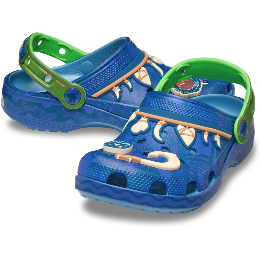 Let your little adventurer tell their story with the new Kids’ Disney Moana Maui Classic Clog. Beyond the Magical Hook, these clogs feature Jibbitz™ charms including the feared Kakamora and the trickster himself. Thanks to the light, durable Croslite™ material, journeys small and big will be done in comfort and style.