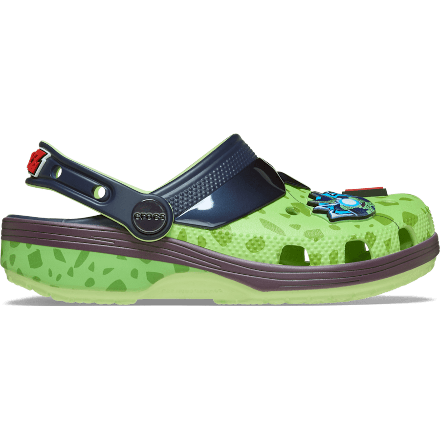 Transform your kid’s look like Cell in the new Dragon Ball Z Cell Classic Clog. This villainous clog features a green speckle treatment and high-shine navy blue elements mirroring Cell’s body. Five Jibbitz™ charms are included featuring his various forms and a Red Ribbon Army charm. Will this be their ultimate form? Step in and find out.