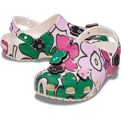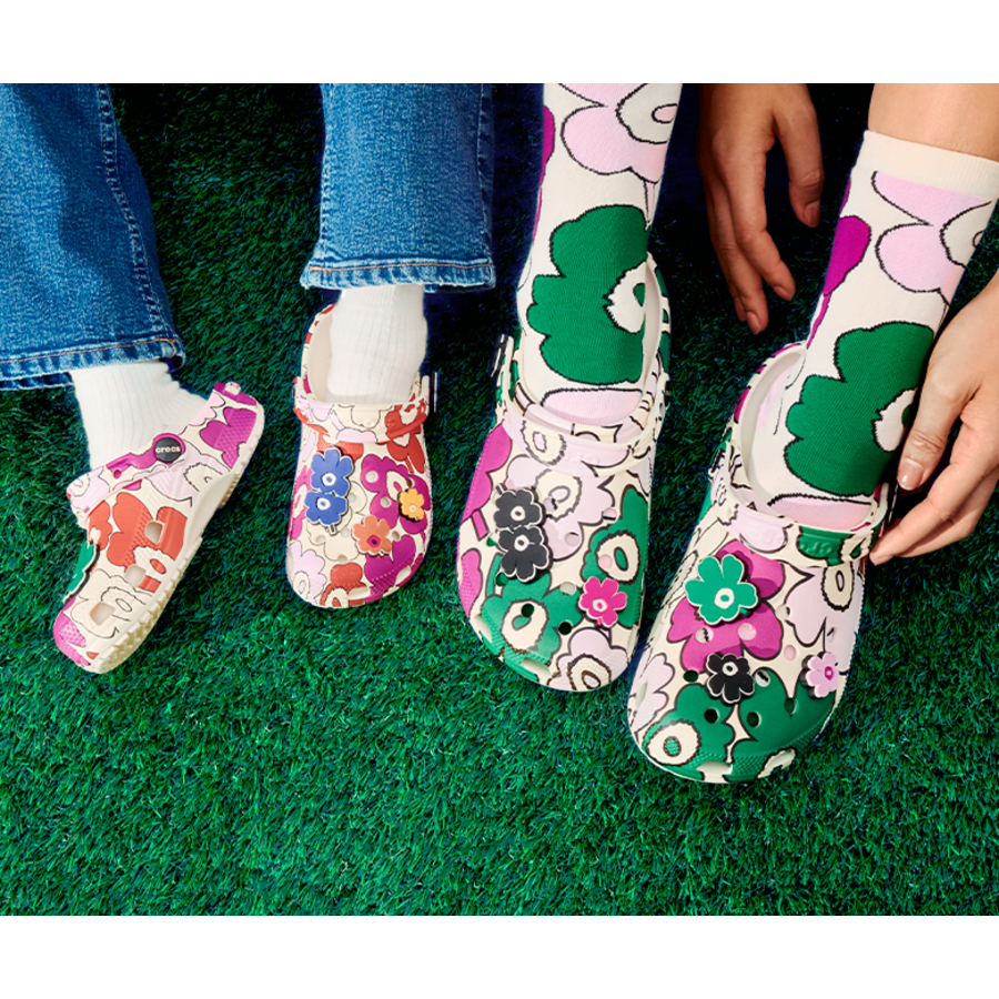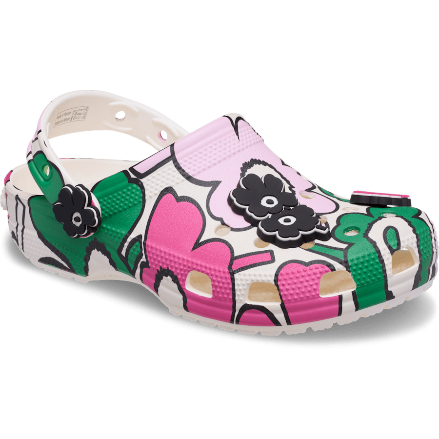 The Marimekko x Crthtocs Classic Clog features a blossoming Unikko floral print created by Maija Isola in 1964. A lively assortment of limited-edition Jibbitz™ add petaled personalization with Unikko flower rivets for extra charm. Sink-in cushioning and breezy ventilation make this spring style a breath of fresh air.