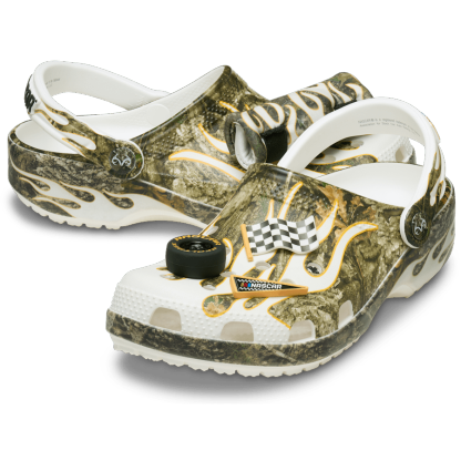 Start your engines, because the NASCAR x Realtree Classic Clog lets you live life at your own speed. With exclusive NASCAR x Realtree Jibbitz™ charms, you’ll be race ready. And a functional drink holder Jibbitz™ charm will keep your can cool. Wear them anywhere, from track to trailside.