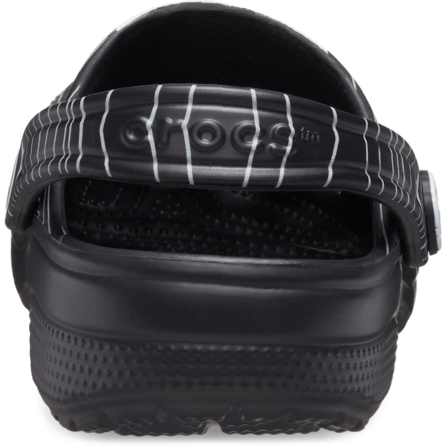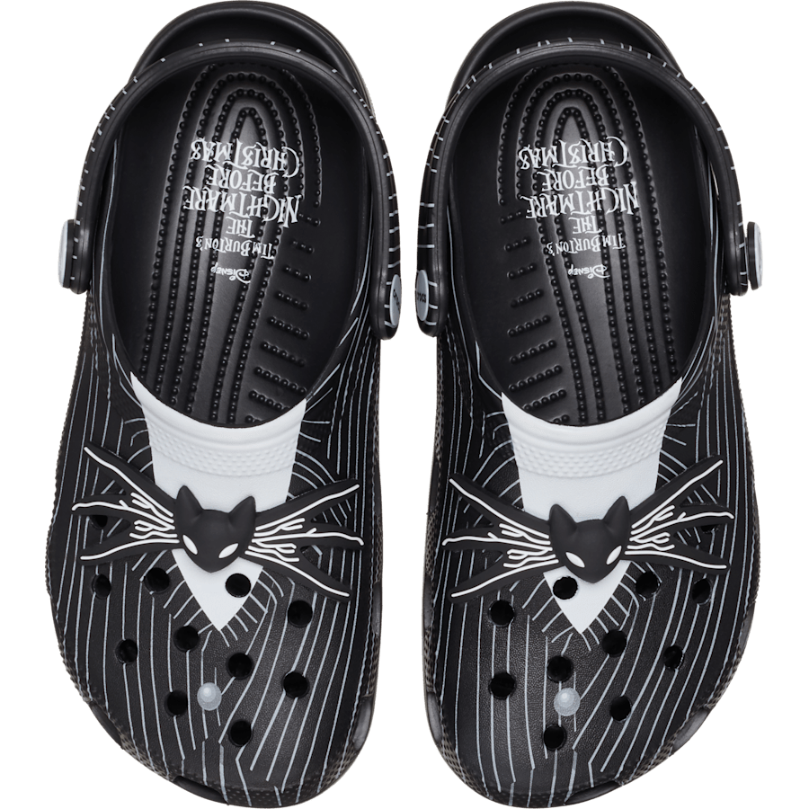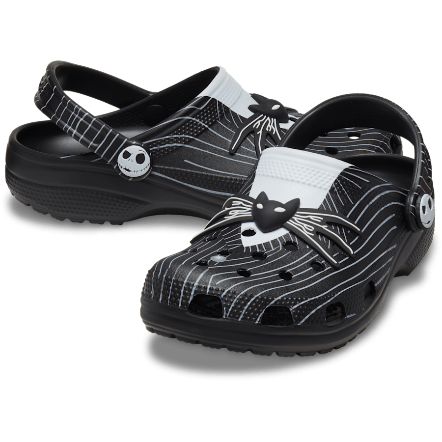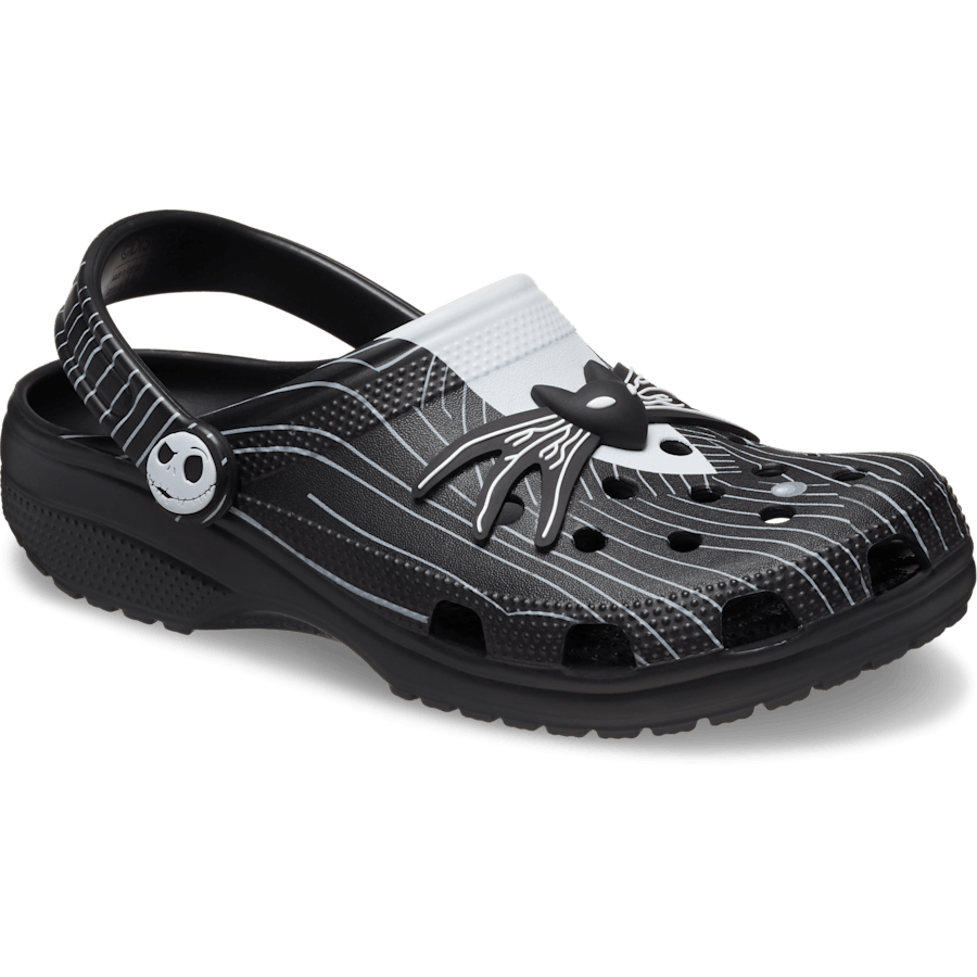 It's the iconic clog that started a comfort revolution around the world now with a frightening twist. This merry and scary Disney Tim Burton’s The Nightmare Before Christmas Clog features Jack Skellington’s signature suit pattern, and his signature oversized bat bow tie. They’re a stylishly spooky way to celebrate this classic animated film.