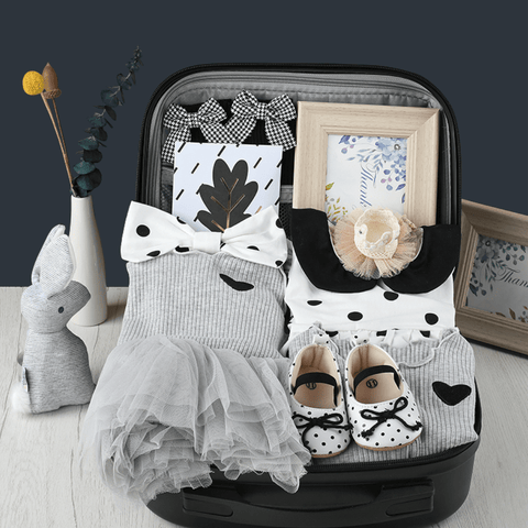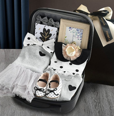 This Baby Gift Set for girls is a wonderful way to spoil your little ones, with clothing and accessories. It includes everything you need to dress your baby in style. It features outfits, socks, shoes, and others. It comes with a suitcase box which you can reuse after. This set is perfect for any special occasion or as a thoughtful gift for the new baby in your life.