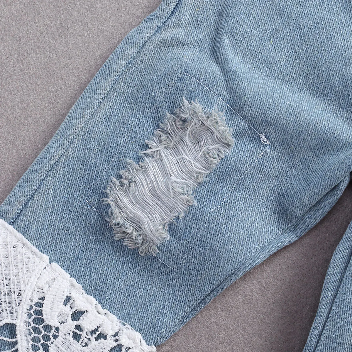 Long Sleeve Romper Tops Blue Denim Pants