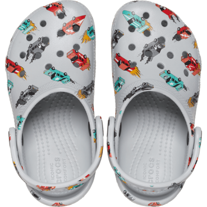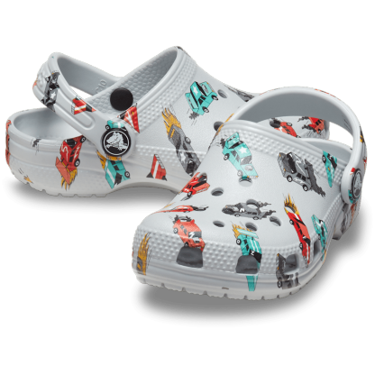 Little ones will love the fun race cars graphic and iconic Crthtocs comfort in the Toddler Classic Race Cars Graphic Clog. The unique graphic makes them extra fun, and Croslite邃「 foam construction keeps them light and easy to wear. Grounded in comfort, spiked with personality.