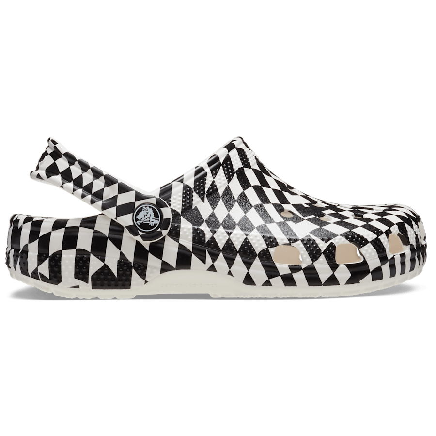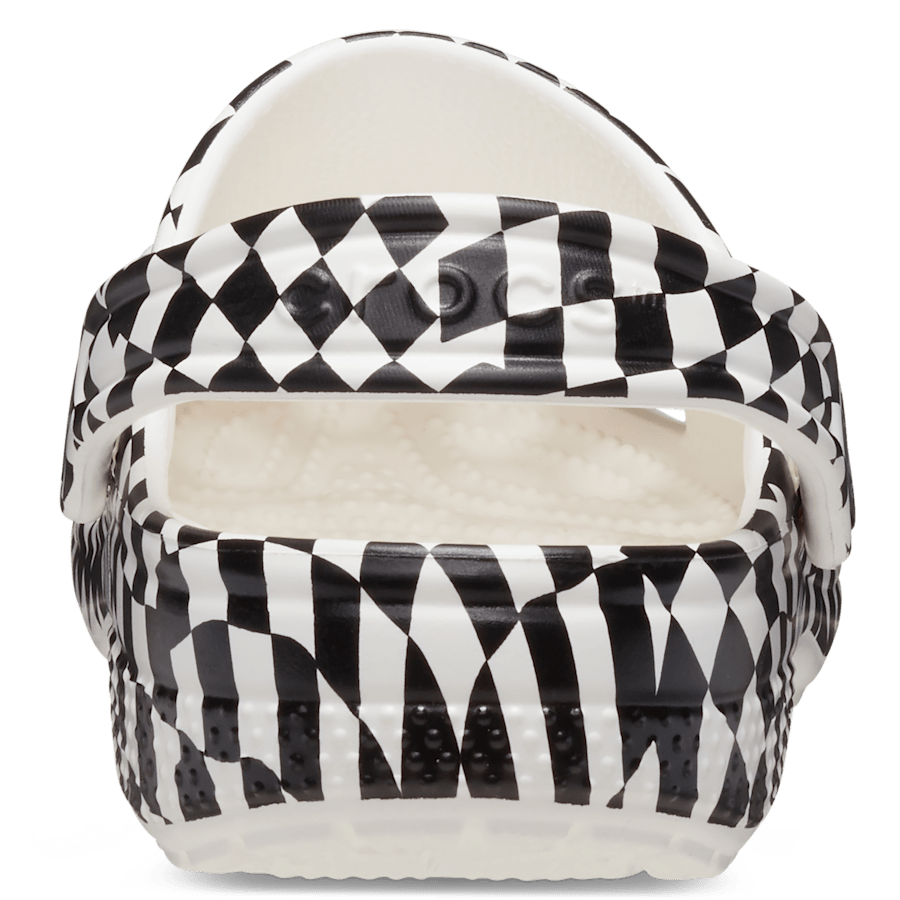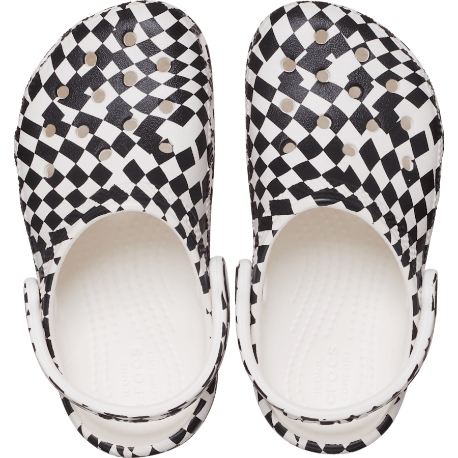 A warped black and white checked print provides extra style to this version of the iconic clog. The unique print helps little ones show off their creative spirit, and Croslite邃「 foam construction keeps them light and easy to wear. Also available for adults, kids and littles, so you can get matching pairs for a fun full family moment. Grounded in comfort, spiked with personality.