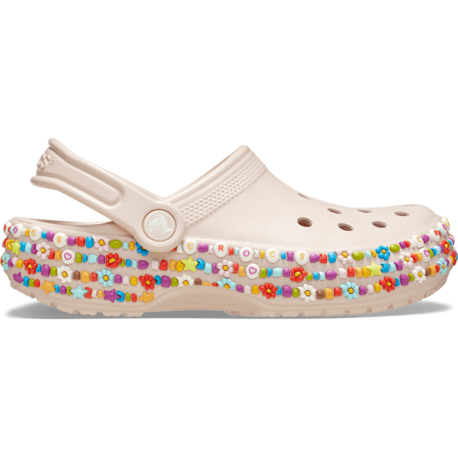 This fun version of the Classic Clog features a band with secured strands of beads, similar to friendship bracelets. The unique beaded band helps kids show off their creative spirit, and Croslite™ foam construction keeps them light and easy to wear. Grounded in comfort, spiked with personality.