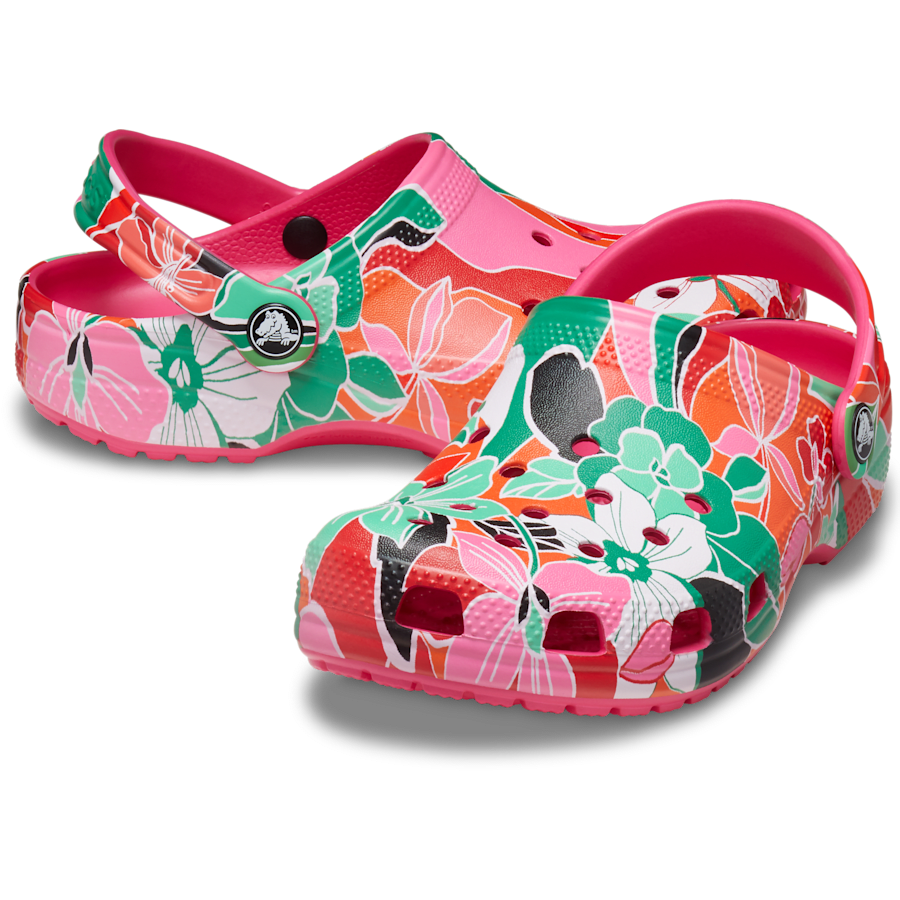 A colorful graphic inspired by woodcut floral designs provide extra style to this version of the iconic clog. The stylish graphic helps you show off your creative spirit, and Croslite™ foam construction keeps them light and easy to wear. Grounded in comfort, spiked with personality.