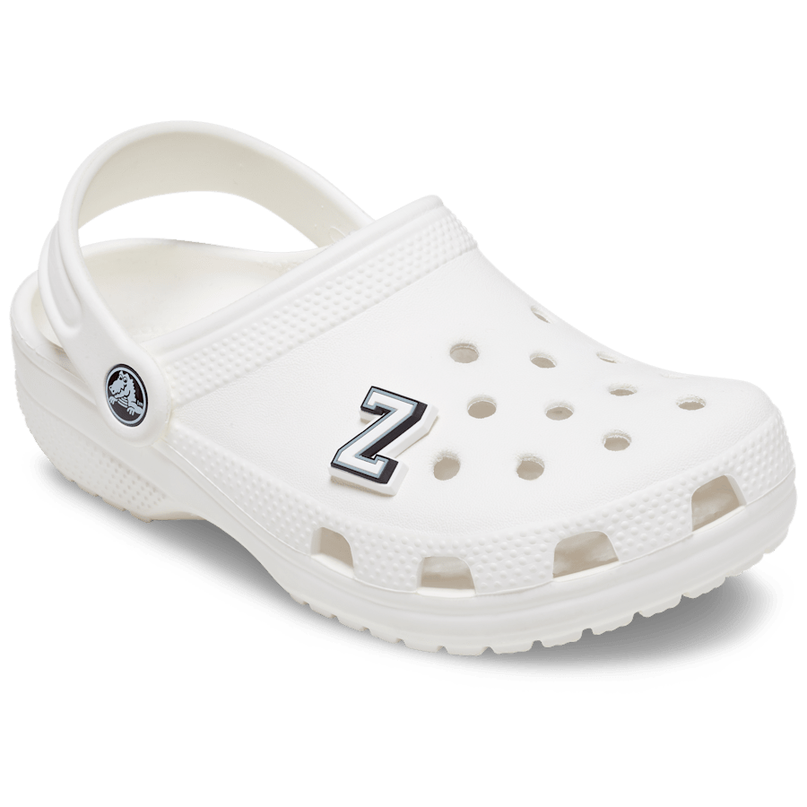 Use these varsity-style Jibbitz™ charms to spell your name or initials, show off your school or team pride, or write just about anything else! The white letter has a grey outline and a black shadow, so you can be sure that everyone will see these classic letters.
