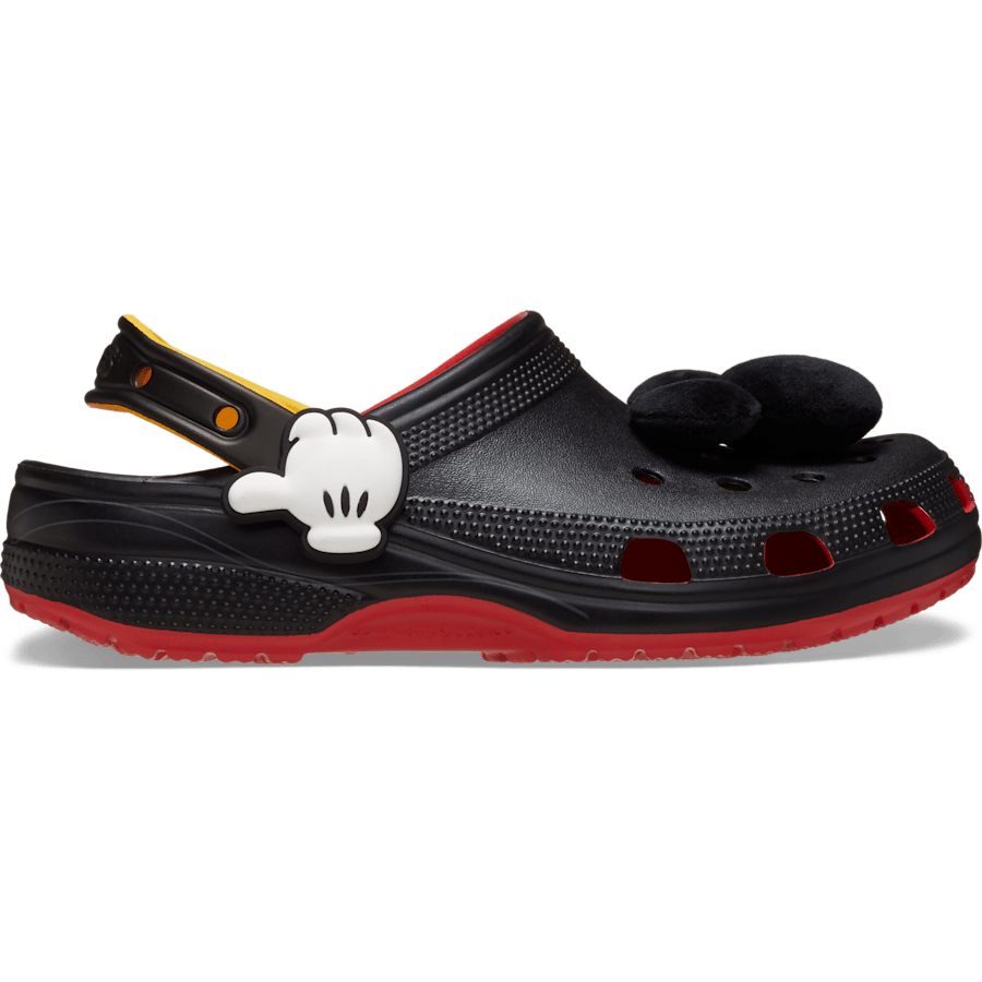 These clogs are perfect for anyone who loves all things Mickey Mouse. Featuring a plush oversized Mickey Mouse head and unique white glove rivets, show off your love for Mickey every time you put on these shoes.