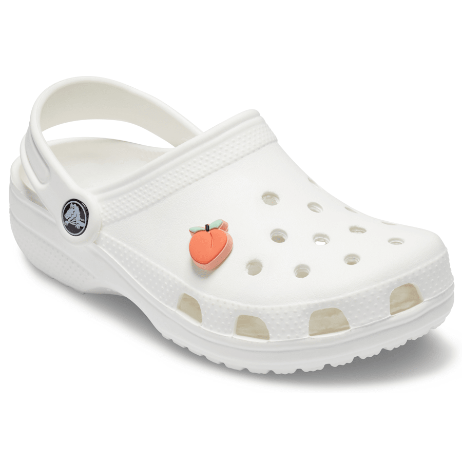 A summertime favorite! Add some fun, fruity flair to your Crthtocs™ clogs or slides with the Peach Jibbitz™ charm.