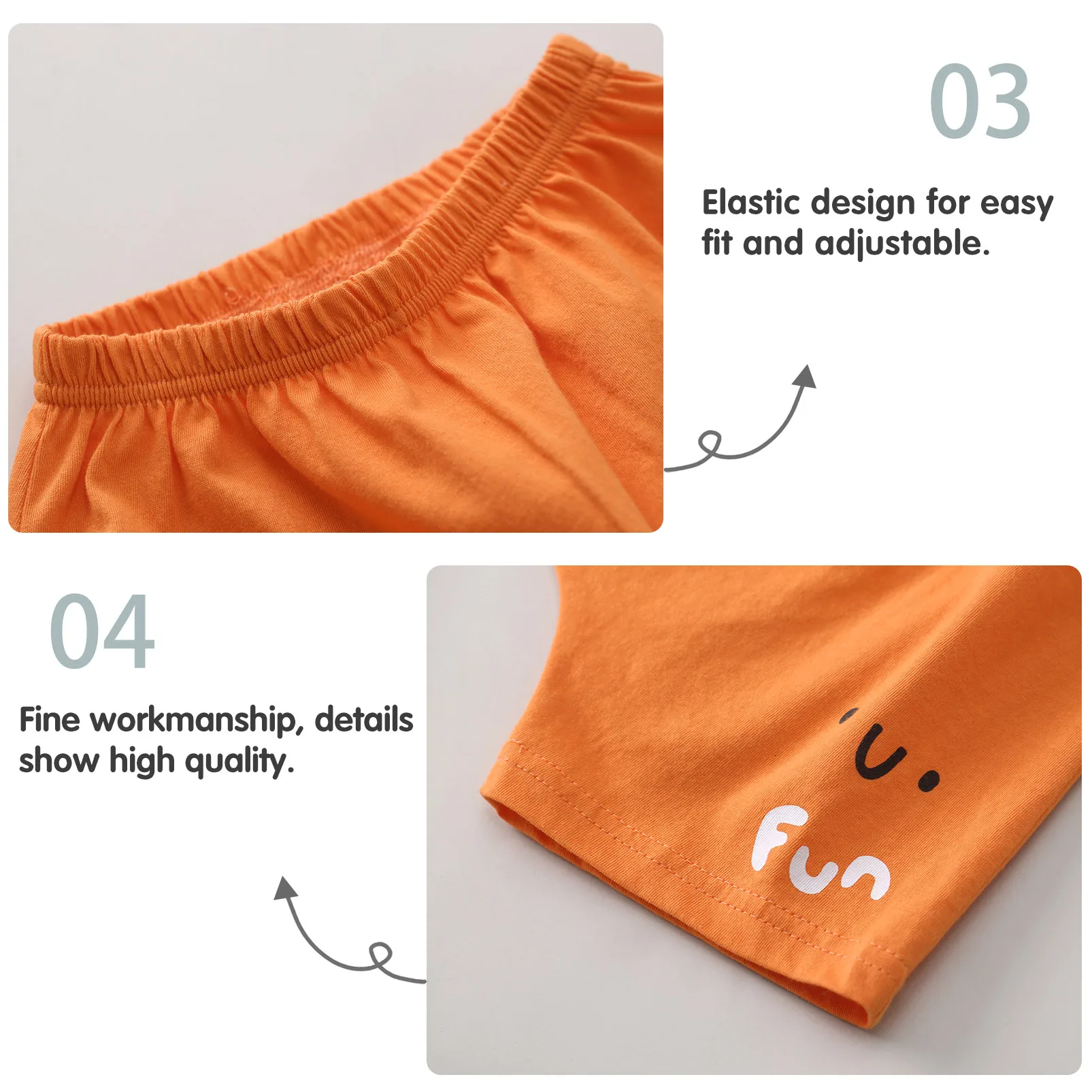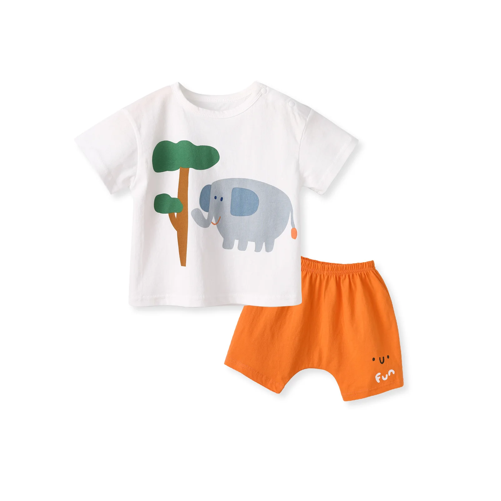 Summer fun is here! Let the fun begin with these 2 pcs short sleeve outfits. Soft and breathable, these quick-drying garments are perfect for your active kids. Featuring a short-sleeve shirt with a cartoon design and stretchy shorts. This set comes in a variety of colors and combinations to keep you and your child both happy.