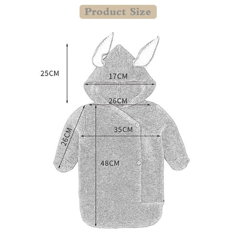 Features: Long sleeves, hooded, adorable ears like a bunny, solid color, buttons. Snap fastener, easy to open and close on both sleeve cuffs and front chest. Complete coverage while the baby is sleeping, providing overall security. It also helps reduce the chance of catching a cold or trotting.