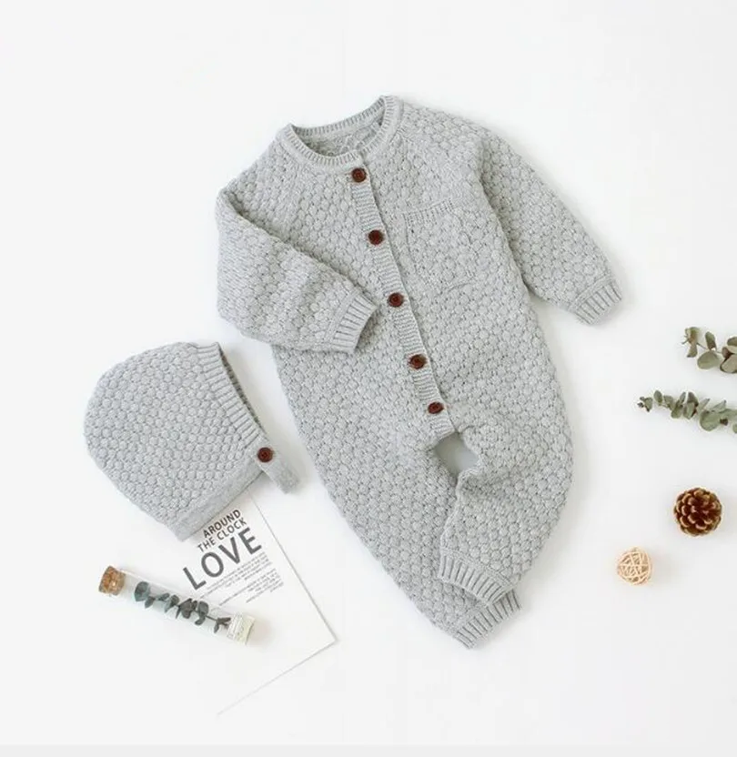 These baby knitted rompers are essential in every newborn's wardrobe. Made from a beautiful blend of cotton, this luxurious long sleeve romper with hat is perfect for playdates and outdoor adventures. It is also a gorgeous baby gift every parent will love.