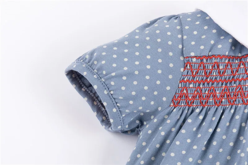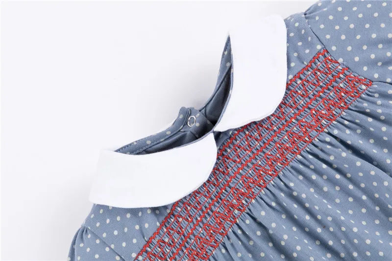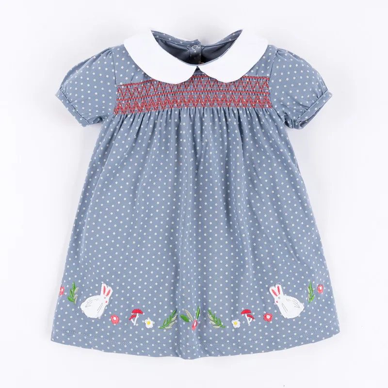 This sweet embroidery floral dress has plenty of vintage charm. It is a beautifully designed wardrobe essential.  Featuring a peter pan collar, this floral print dress is complemented by delicate smocking.  A beautiful lace hem adds the perfect finishing touch.  It is a perfect dress for any occasion.