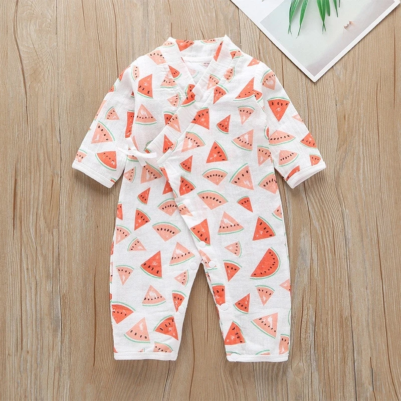 Japanese baby kimono for your little one. Made with 100% quality fabric. This kimono has different designs that you can choose from. The design has a pleated shoulder and a squarish 3/4 sleeve. It comes with outer ties that fasten to simple knots. It has v neck design and long pants length.