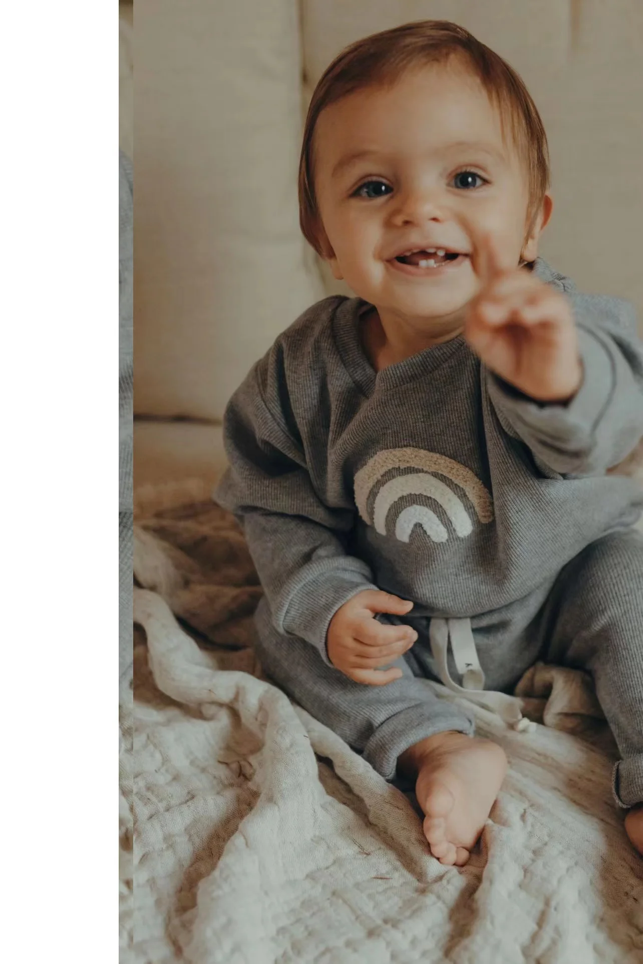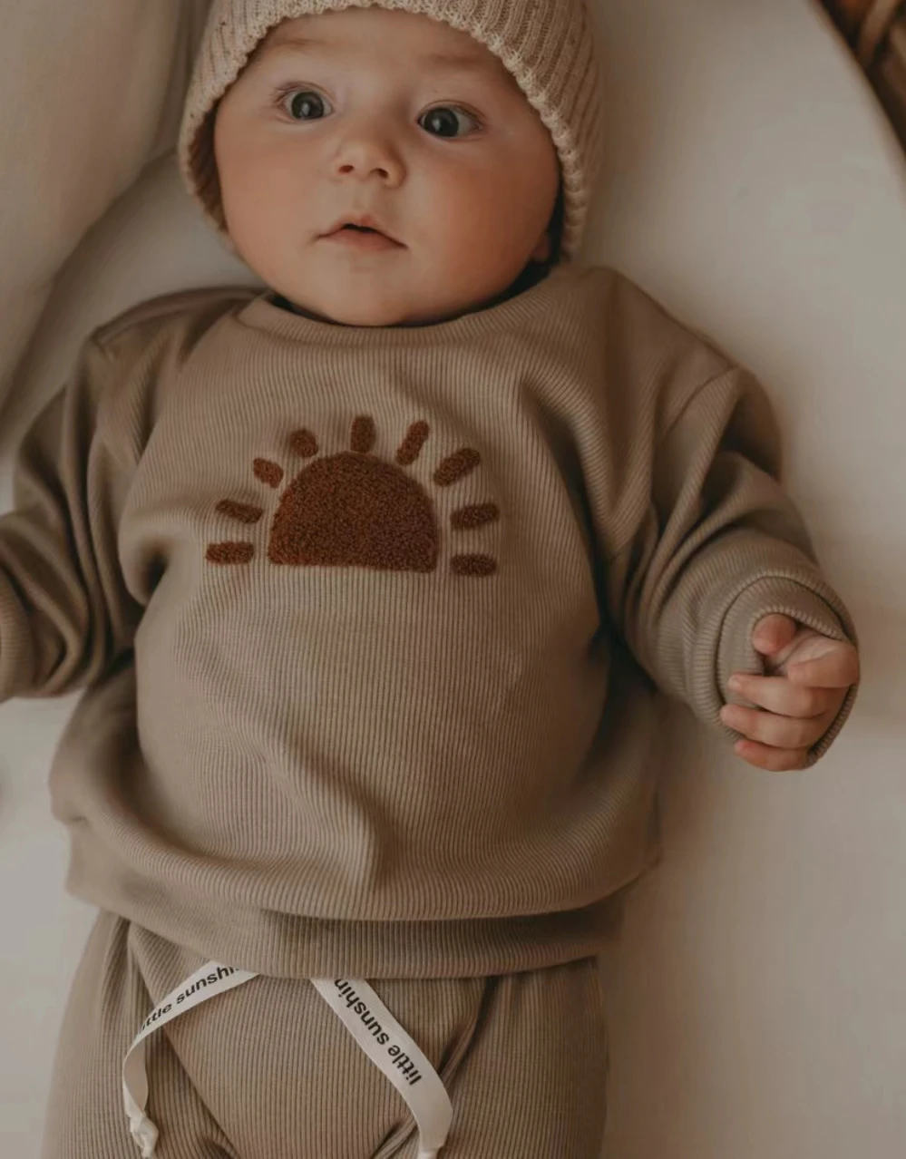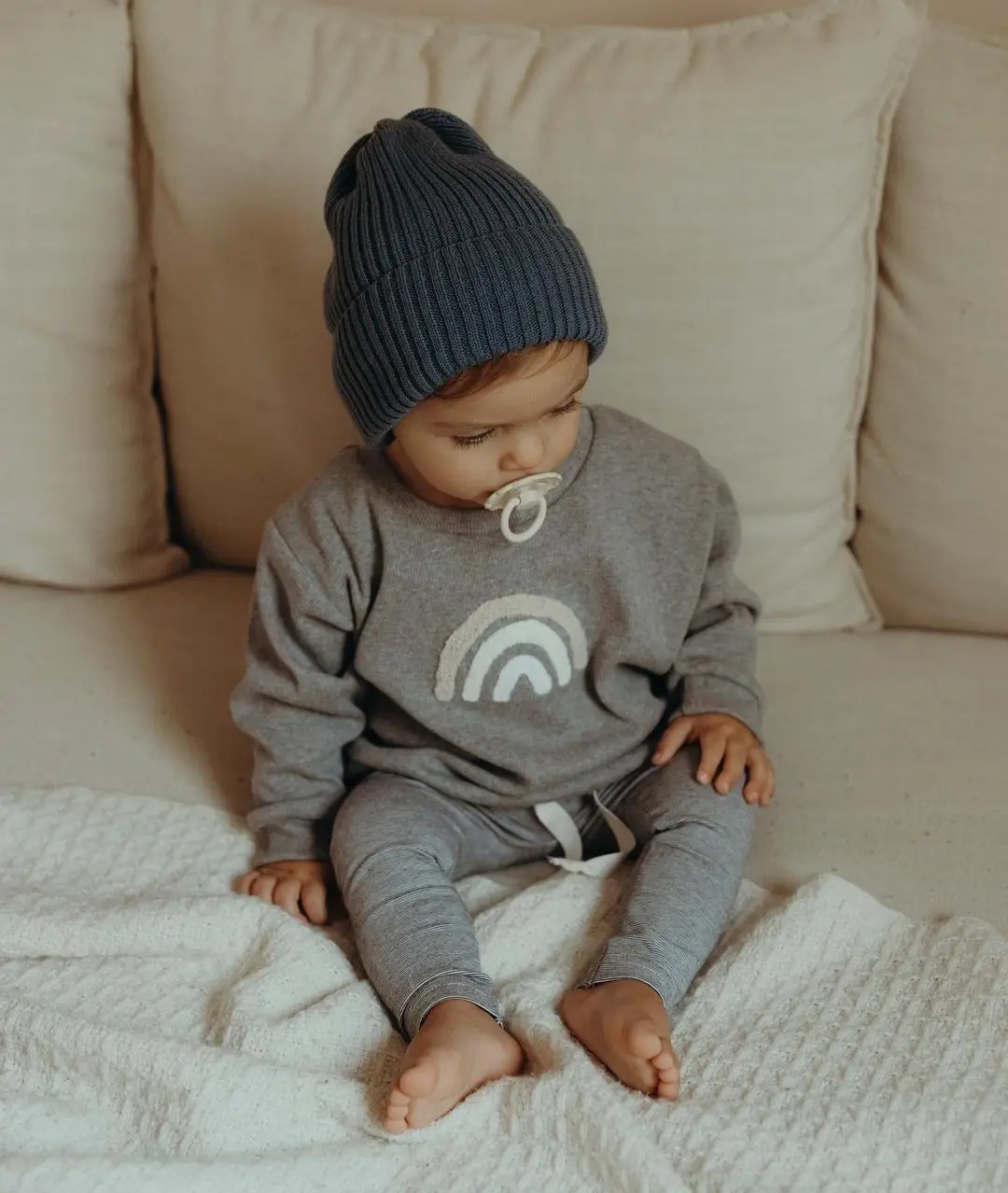 It features an embroidered rainbow design at the front and a matching elastic waist comfy pants. These outfits are perfect for any activity, from playing in the park with friends to riding a family bike ride.