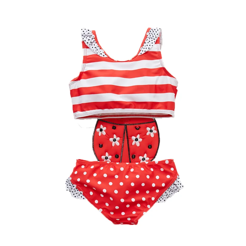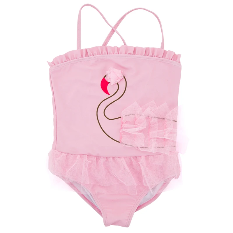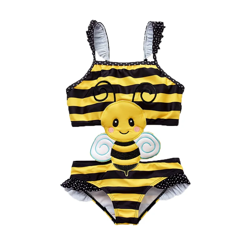 This beautiful one-piece swimwear will certainly stand out. It comes in 8 different designs to choose from.  The material is made of 85% Polyamide and 15% Elastane, Inner 100% polyester. High elastic spandex offers enough space for a growing child.