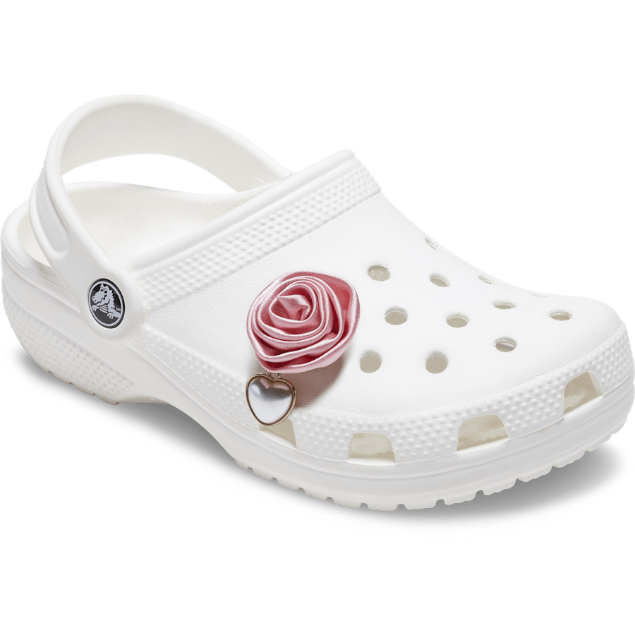Pop some personality into your shoes with this Pink Rose with Pearl Drop Jibbitz™ char. It's the perfect addition to your favorite pairs of clogs, slides, and more.