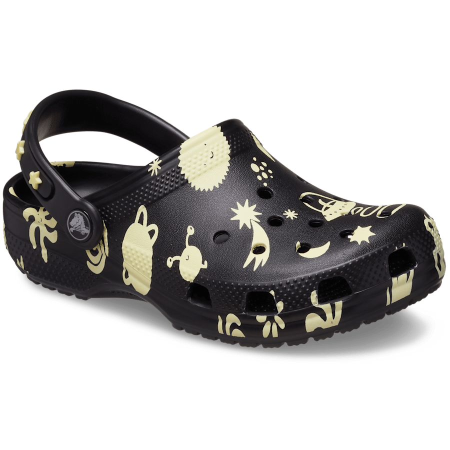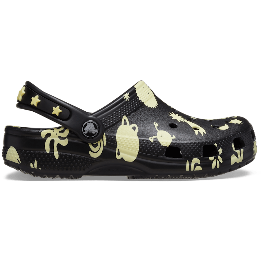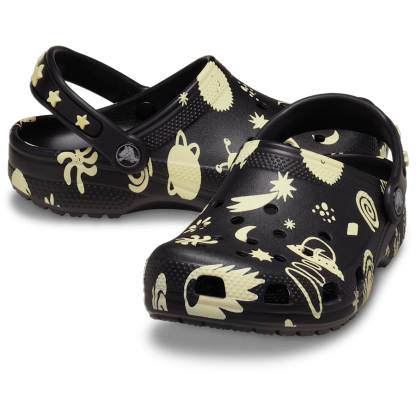 Little ones will love the fun glow-in-the-dark space graphic and fixed glow-in-the-dark star embellishments on the backstrap. Reminiscent of kids’ bedrooms that featured a glow-in-the-dark galaxy on the ceiling, these clogs help your little ones show off their creative spirit, and Croslite™ foam construction keeps them light and easy to wear. Crthtocs offers a variety of Classic Clogs for Kids and Toddlers that feature original character-rich graphics and other inspired designs to help kids express themselves and engage new friends, resulting in more fun for the little ones.