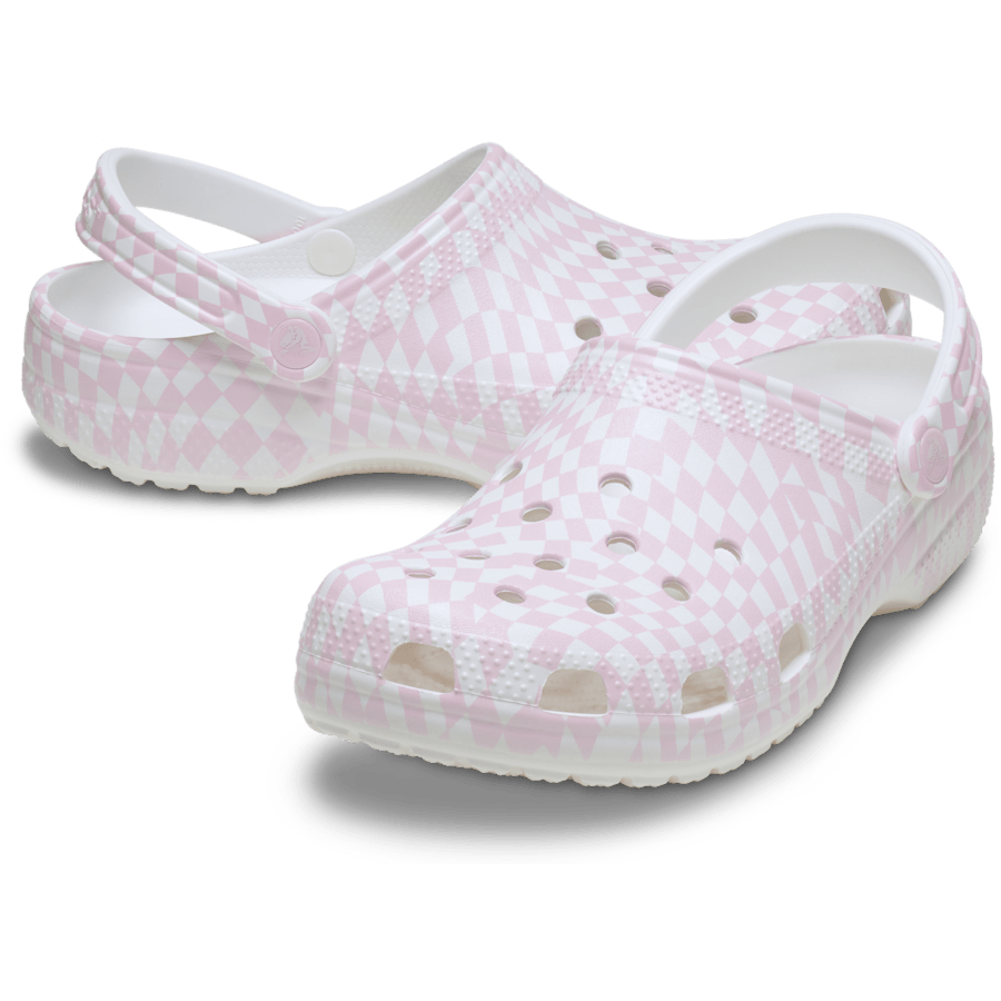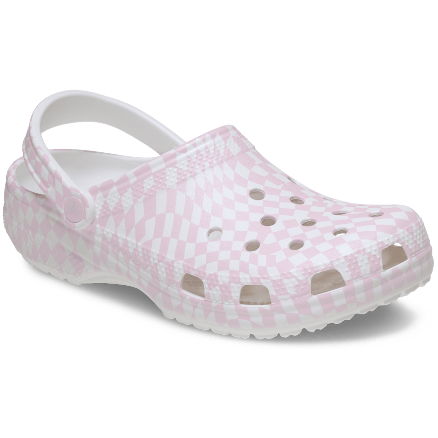 A warped black and white checked print provides extra style to this version of the iconic clog. The unique print helps you show off your creative spirit, and Croslite™ foam construction keeps them light and easy to wear. Also available for kids, so you can get matching pairs for a fun full family moment. Grounded in comfort, spiked with personality.